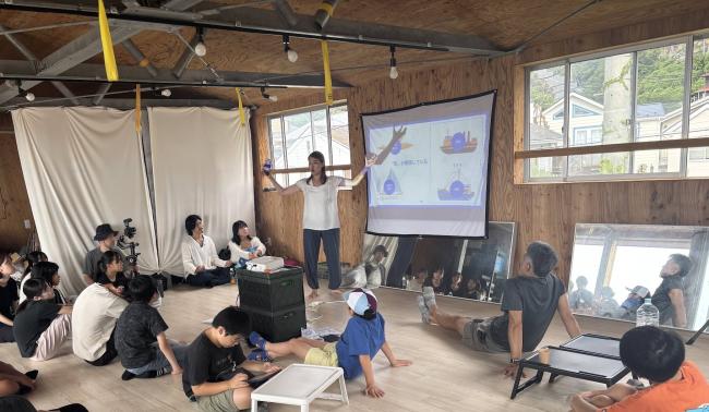 そして、いよいよ乗船の時間です。ライフジャケットをつけ、いざ出航。子供達を乗せた船は岸を離れ、大海原へ飛び出していきます。