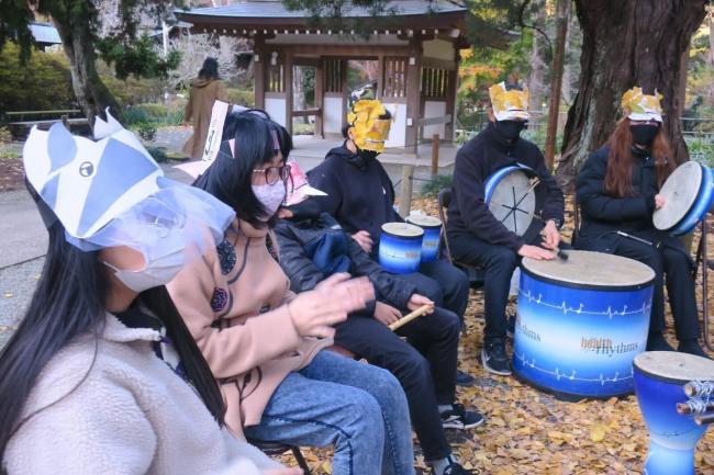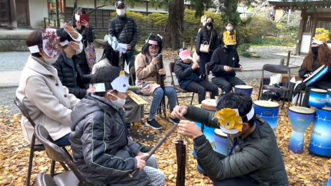 自分で作った楽器をならしたり、太鼓をたたいたり、迎えに来た家族も声で参加するなど、言葉を超えた音によって人と人とが共鳴し合いました。