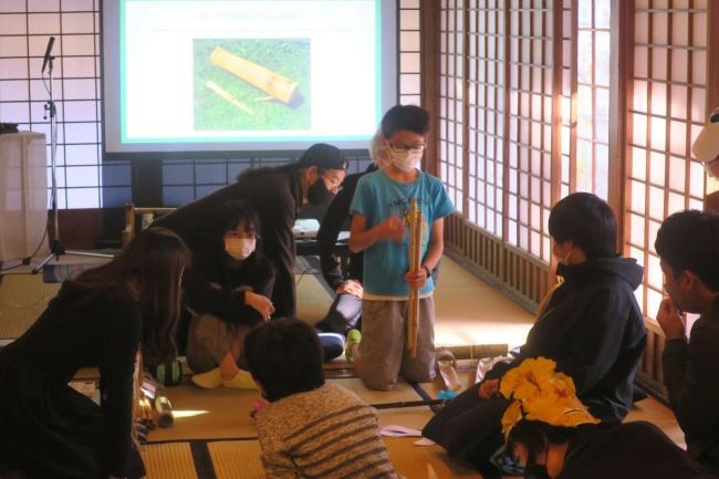 映画祭を盛り上げるべく2日目に作った楽器を使って、自分の音とリズム作りに挑戦しました。