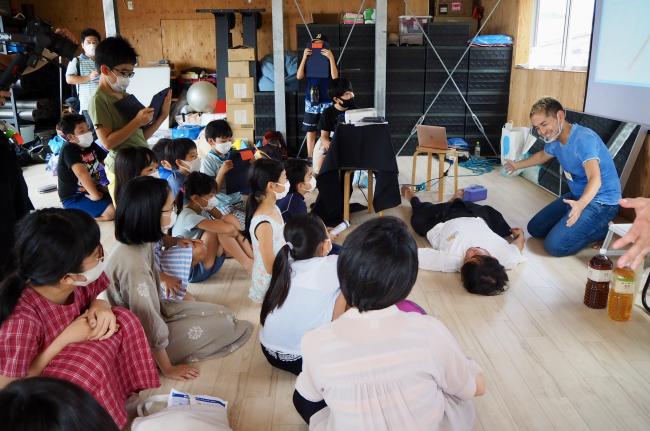 ドキドキ高鳴る心でやってきた子どもたちは、藤本さんから海水と羊水の成分が似ていることを学びました。