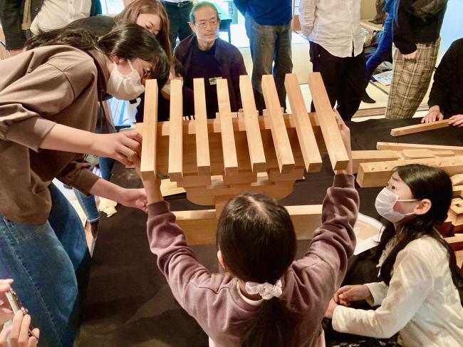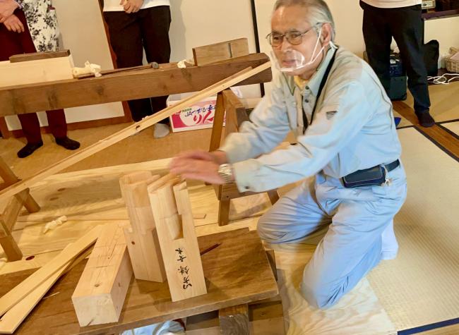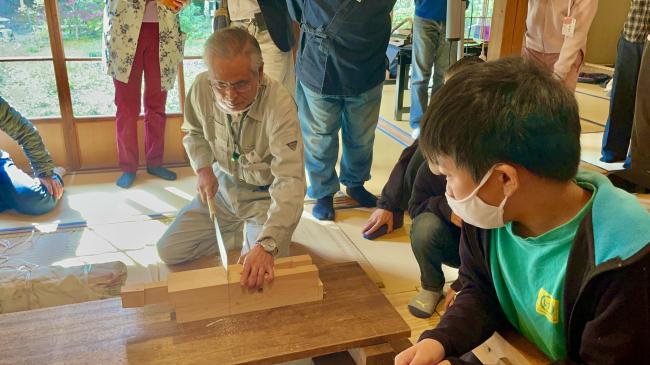 お話を聞き、木を組み合わせて建物を組み立てていく匠の技や工夫を学びました。