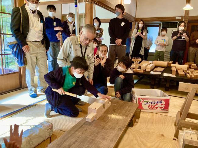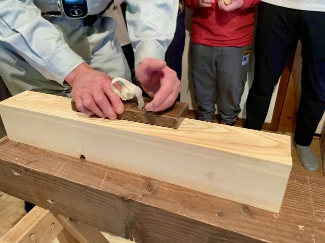 ノコギリやカンナといった建築で用いる道具を使ったり、釘を使わずに組み立てられた木材パズルを分解してみたりと、手を動かして体験しました。
