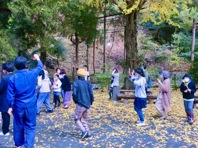 お庭に繰り出し踊り出したら「宴」の始まり。全員共通の振り付けと自分だけの振り付けを組み合わせ、心と身体で舞いました。