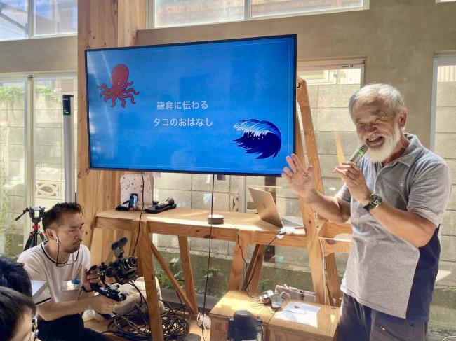 獲れたての生きたタコを持って登場したのは、鎌倉の現役漁師の加藤彰一さん。
