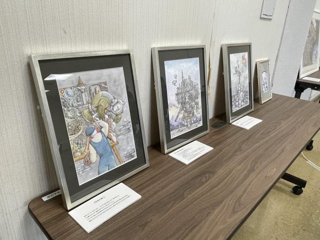 また、センパイトークや座談会でお話し頂いた絵本作家の濱口瑛士さん、フォントクリエイターの小林大真さん、細密画家の金澤洋輝さんの作品群も飾られ、会場に彩りを添えてくれました。センパイたち、ありがとうございました。