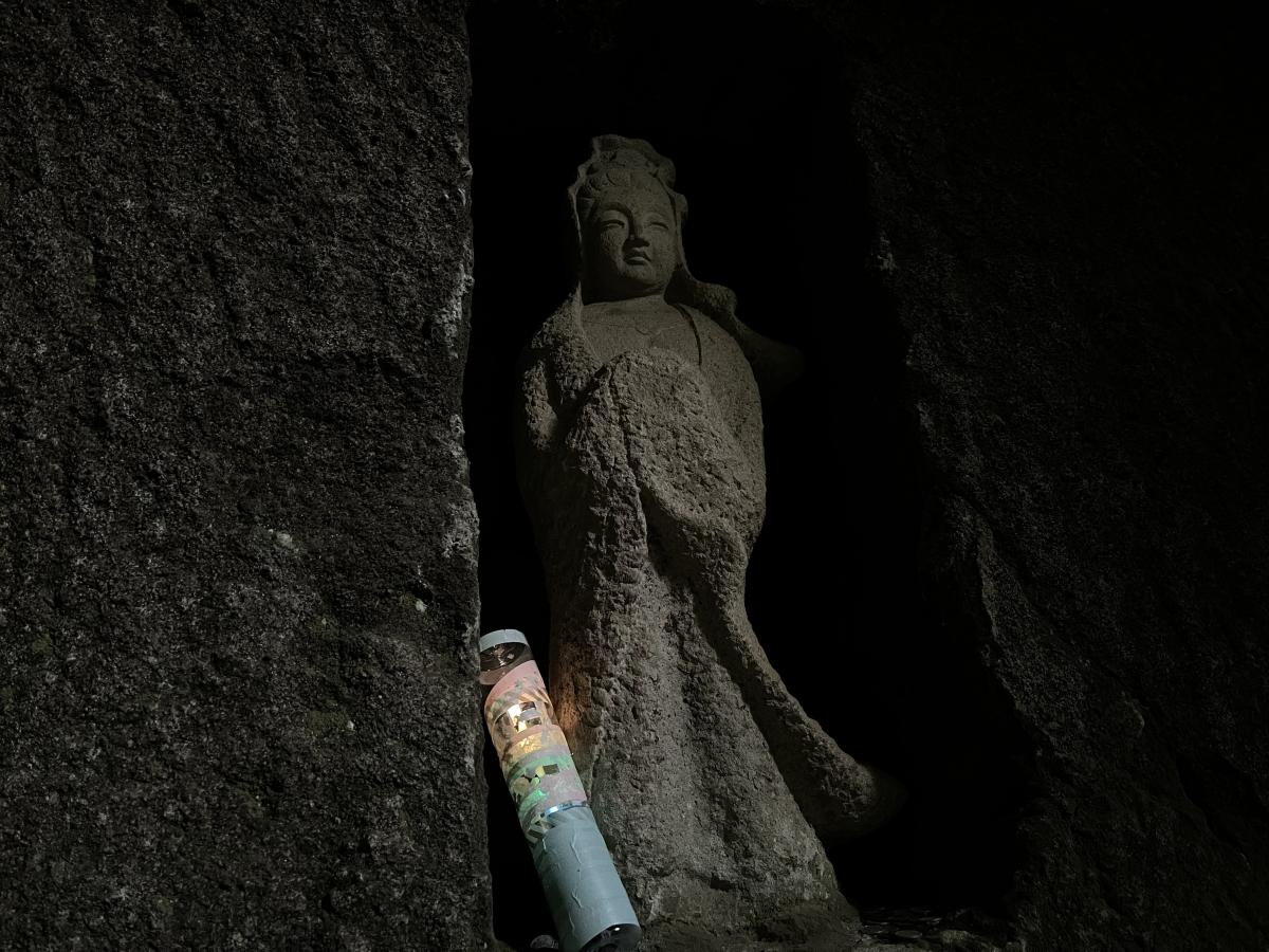 浄智寺の境内を歩いてみると、各所にそれぞれの軌跡が表現されています。仏像の側、笹に掛けたり、柿と並べてみたり、きっとその場所が持つ何かが琴線に触れたのでしょう。