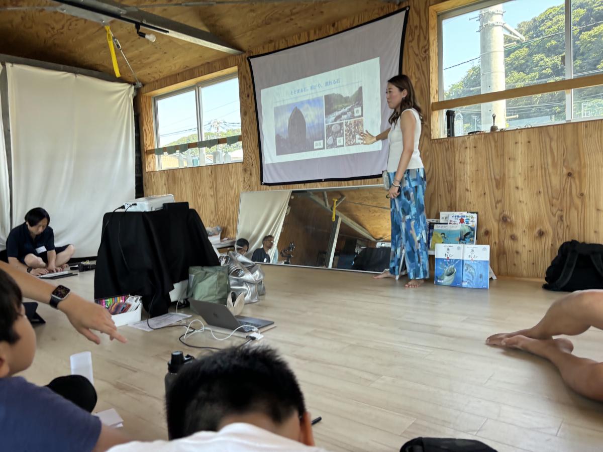 プログラム初日、最初のナビゲーターはファブラボ鎌倉代表の渡辺ゆうかさん。それに先んじて、SPACE代表の福本から海プログラムのテーマの一つである「石と意思」についてレクチャーがありました。