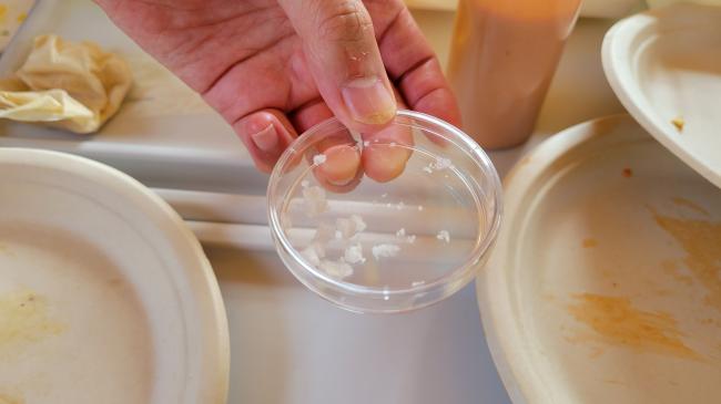 調味料は複数ありましたが、結晶をルーペで観察したこともあり、子どもたちは特に材木座で作られた塩に興味津々。