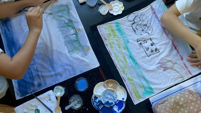 石でできた絵具に託した自分だけのイメージで彩った風呂敷で、どんな意思を包もうか。玉手箱の完成に思いを馳せながら、帰路につきました。