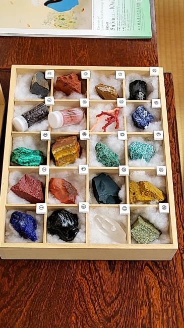 まずは今西さんに岩絵具について説明いただきました。かつて人間が、自らの意思を形にするために宝石などを砕いて作ったなんとも贅沢な色たち。子どもたちの目は絵具の材料である鉱物に釘付けです。