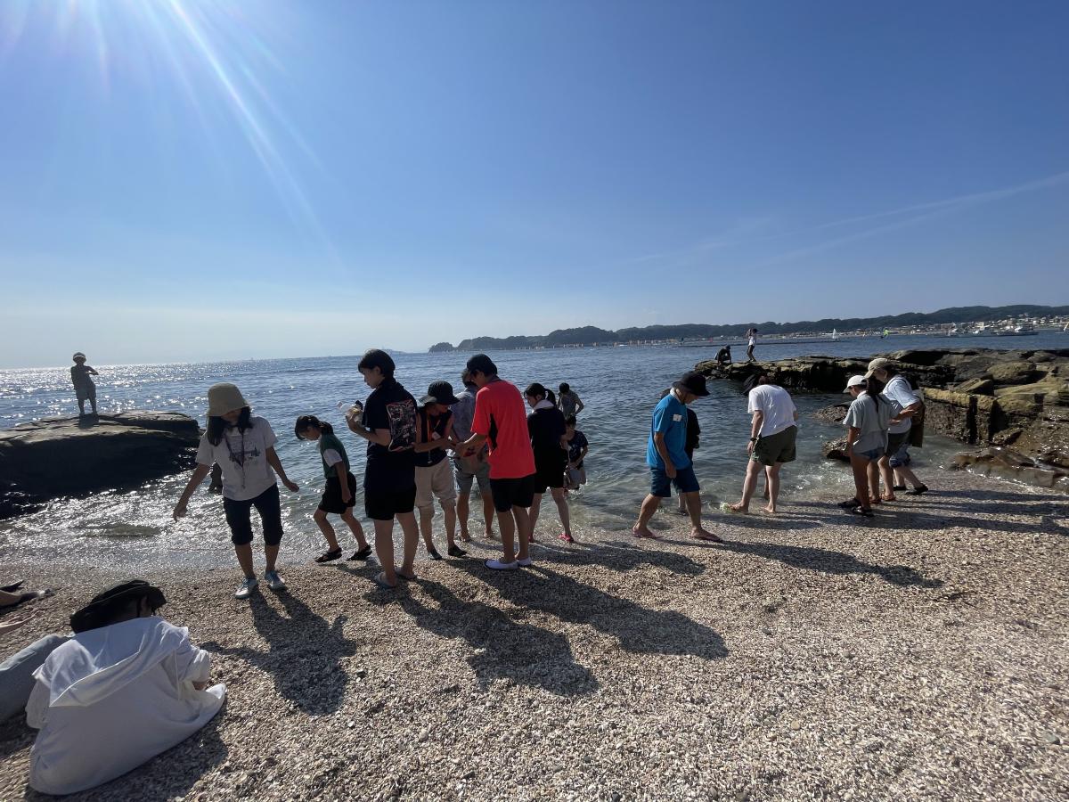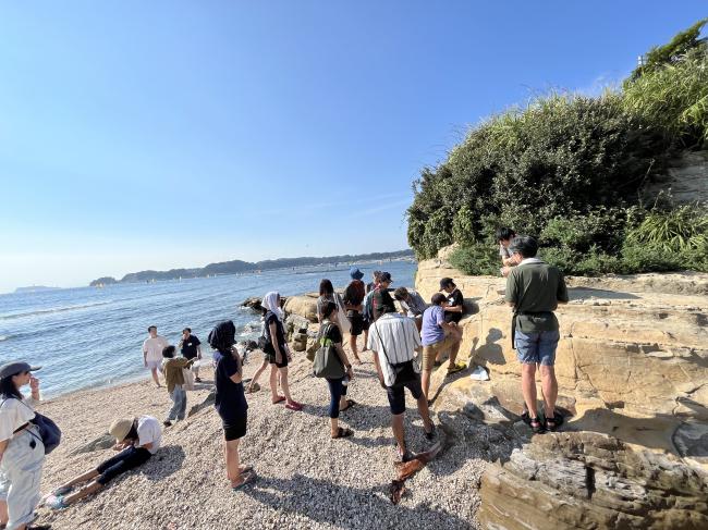 ナビゲーターは渡邉剛さん。まずは室内で、地球ができてからずっと存在し続ける、地球の変化を刻み込む石のお話を学びます。渡邉さんの石コレクションにみんな釘付け!自分たちもこんな石を見つけたいという思いで、実際に鎌倉の海へ「いし」を探しに向かいます。