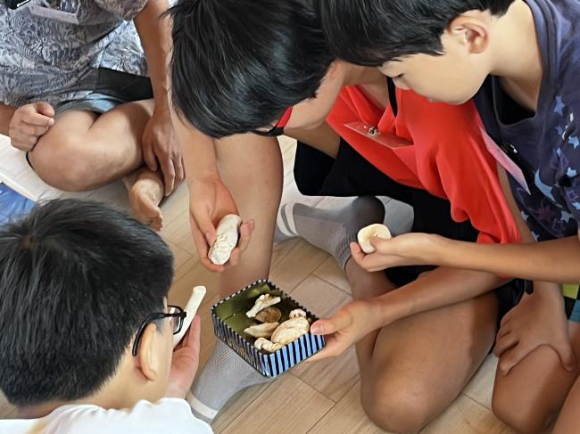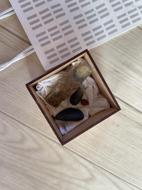 石を集めたら、最後はもう一度室内に戻って観察タイム。見つけた石を細部まで見るとまた違った見え方、素敵な発見が得られました。石との対話で見つけた自分の心の声を、石に託して未来へと紡いでいく。そんな思いを抱えながら1日目は幕を閉じます。