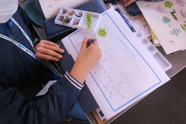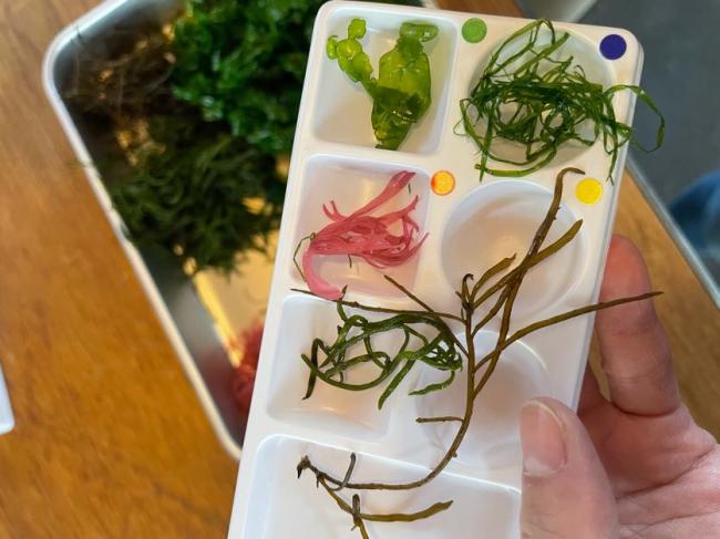 レクチャーを受けて海藻の形や色、特性を学んだ後、実際に自分たちでも海藻を徹底解剖するため、子どもたちも食べたことのない海藻を試食し、どんな味、食感か、比べて分析してみることに・・・