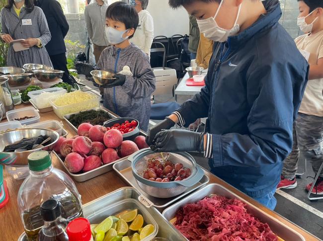 海藻の試食の分析結果を踏まえながら、海藻の特徴や自分が表現したい世界観を込めて、それぞれに試行錯誤して作った末に出来上がったULTLAチルドレンたちのサラダは一つとして同じものがなく、自分らしいクリエイションが展開されました。
