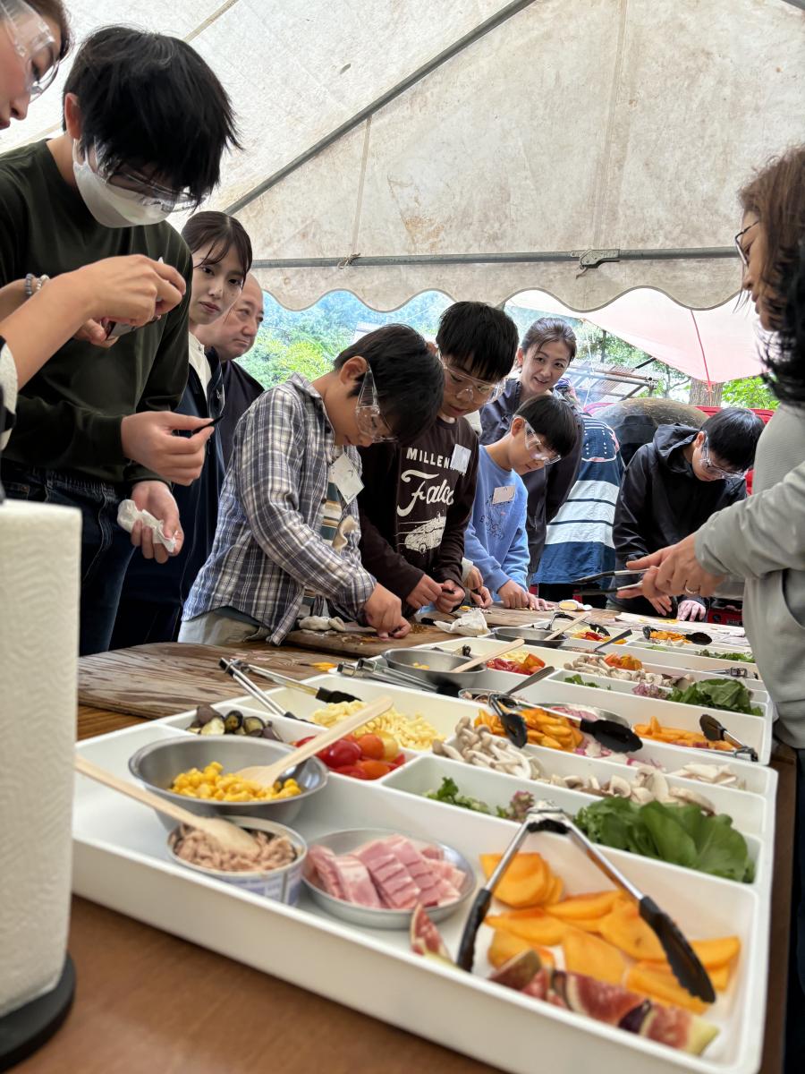 石窯ピッツァのすごい秘密さて、ナイフ作りに挑戦して疲れた後は、待ちに待ったお昼ご飯の時間。ナビゲーターは勝見淳平さんと神澤則生さん。作ったナイフで鎌倉野菜を切り、ピザ生地に自分の好きなようにトッピングをしていきます。そして、そのピザを石窯で焼いて出来上がり!石窯で焼くとこんなにも美味しいのか、と子どもたちが笑顔に。石の素晴らしさを食を通じて体感して、自分たちの意志を考えるきっかけになっていたらいいですね。 <<一覧にもどる < > シェアする シェア ツイート LINE
