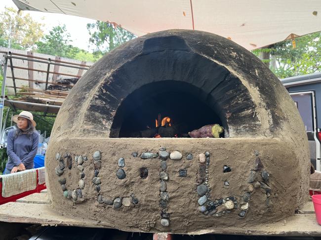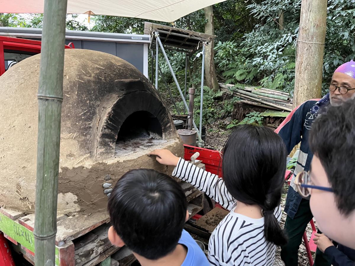 それぞれの思いを石に乗せて貼り付け、みんなの意志がこもった素敵な石窯が完成しました!
