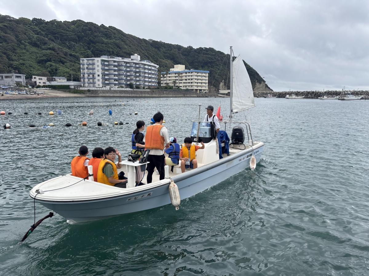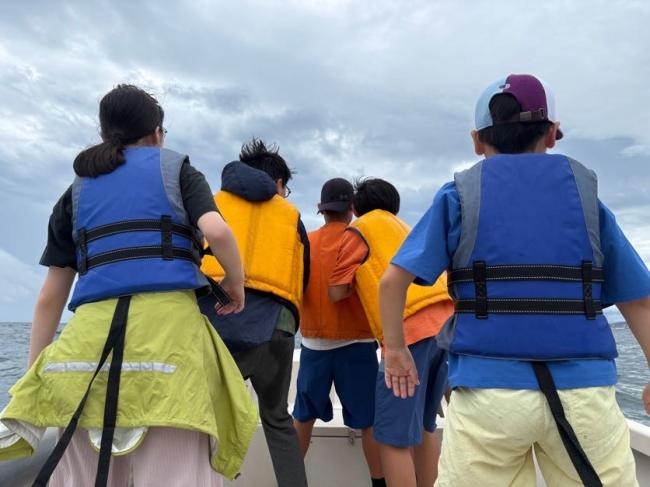 そして、いよいよ乗船の時間です。ライフジャケットをつけ、いざ出航。子供達を乗せた船は岸を離れ、大海原へ飛び出していきます。