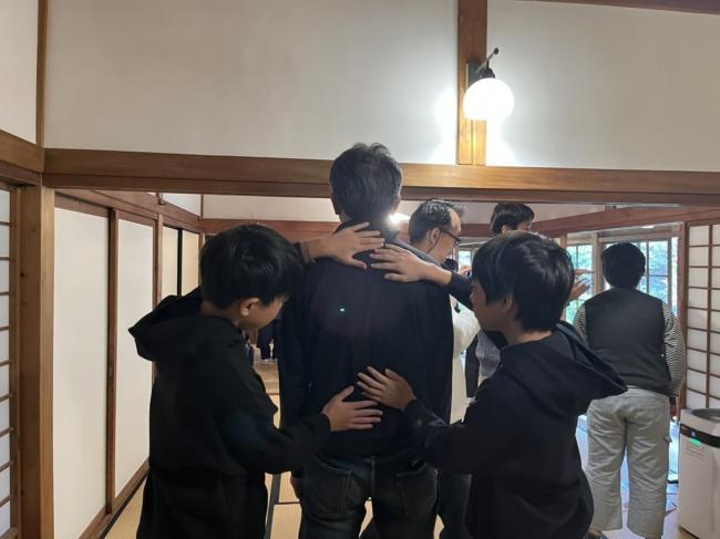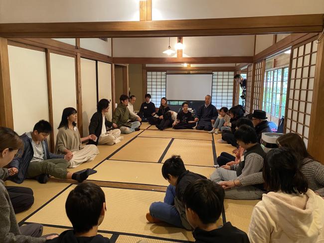 部屋に戻ったあとは、みんなで一体となって「気」を感じてみましょう。